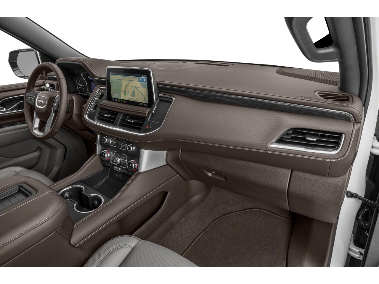LPO, 22 (55.9 CM) MULTI-SPLIT SPOKE CHROME WHEELS LPO wheels will come with 4 steel 22 wheels from the factory with alignment specs set to 22 LPO wheel selected (dealer-installed) Includes factory-installed wheel locks and not (SFE) wheel locks, LPO. SLT LUXURY PACKAGE includes (UV2) HD Surround Vision, (UKK) Rear Pedestrian Alert, (A45) memory settings, (DXR) outside heated power-adjustable, power-folding, body-color mirrors with driver-side auto-dimming and integrated turn signal indicators, (N38) power tilt and telescopic steering column, (KI3) heated steering wheel, (KA6) second row outboard heated seats, (ATT) second row power 60/40 split-folding bench seats and (AS8) third row power 60/40 split-folding bench seats Vehicles built prior to December 6, 2021, include heated steering wheel. Certain vehicles built on or after December 6, 2021, will be forced to include (00G) Not Equipped with Heated Steering Wheel, which removes heated steering wheel. Vehicles built prior to March 14, 2022 and after April 17, 2022 include heated rear, REAR SEAT MEDIA SYSTEM includes dual rear seat-mounted 12.6 diagonal color-touch LCD HD screens, Wi-Fi wireless projection capability, two Bluetooth® headphones with 2 HDMI ports on the back of the center console, SUNROOF, POWER PANORAMIC, DUAL-PANE tilt-sliding with express-open and close and power sunshade, SEATS, SECOND ROW BUCKET, POWER RELEASE, AUDIO SYSTEM, 10.2 DIAGONAL PREMIUM GMC INFOTAINMENT SYSTEM WITH GOOGLE BUILT-IN includes color touch-screen, multi-touch display, AM/FM stereo, Bluetooth® streaming audio for music and most phones; featuring wireless Android Auto® and Apple CarPlay® capability for compatible phones, advanced voice recognition, in-vehicle apps, personalized profiles for infotainment and vehicle settings (STD), ENGINE, 5.3L ECOTEC3 V8 with Dynamic Fuel Management, Direct Injection and Variable Valve Timing, includes aluminum block construction (355 hp [265 kW] @ 5600 rpm, 383 lb-ft of torque [518 Nm] @ 4100 rpm) (STD), TRANSMISSION, 10-SPEED AUTOMATIC electronically controlled with overdrive, includes Traction Select System including tow/haul (STD). GMC SLT with WHITE FROST TRICOAT exterior and DARK WALNUT/SLATE interior features a 8 Cylinder Engine with 355 HP at 5600 RPM*.