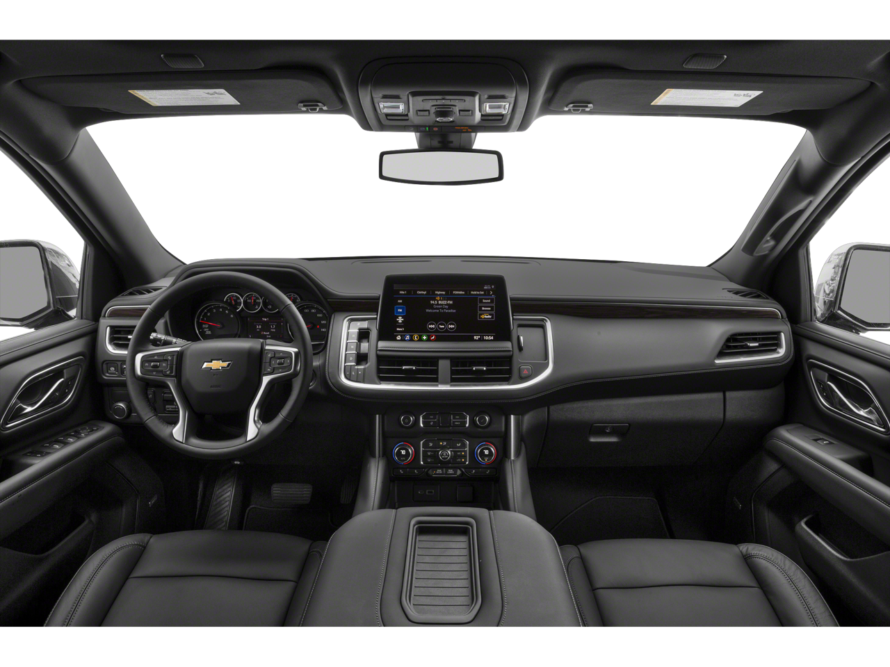 includes (WPD) Driver Alert Package content, (UV2) HD Surround Vision, (UKK) Rear Pedestrian Alert, (A45) memory settings, (DXR) outside heated power-adjustable, power-folding, body-color mirrors with driver-side auto-dimming and integrated turn signal indicators, (N38) power tilt and telescopic steering column, (KI3) heated steering wheel, (KA6) second row outboard heated seats, (ATT) second row power 60/40 split-folding bench seats and (AS8) third row power 60/40 split-folding bench seats, WHEELS, 20 X 9 (50.8 CM X 22.9 CM) PAINTED ALUMINUM WITH MACHINE FACE AND ARGENT METALLIC POCKETS, (select service plan required, terms and limitations apply), including nav capability, 10.2 diagonal HD color touchscreen, includes multi-touch display, AM/FM stereo, Bluetooth® streaming audio for music and most phones; featuring wireless Apple CarPlay® and wireless Android Auto® capability for compatible phones, advanced voice recognition, in-vehicle apps, personalized profiles for infotainment and vehicle settings (STD), STEERING WHEEL, HEATED, with Dynamic Fuel Management, Direct Injection and Variable Valve Timing, includes aluminum block construction (355 hp [265 kW] @ 5600 rpm, 383 lb-ft of torque [518 Nm] @ 4100 rpm) (STD), electronically controlled with overdrive, includes Traction Select System including tow/haul (STD), includes (UKC) Lane Change Alert with Side Blind Zone Alert and (UFG) Rear Cross Traffic Alert. Chevrolet LT with Iridescent Pearl Tricoat exterior and Jet Black interior features a 8 Cylinder Engine with 355 HP at 5600 RPM*.